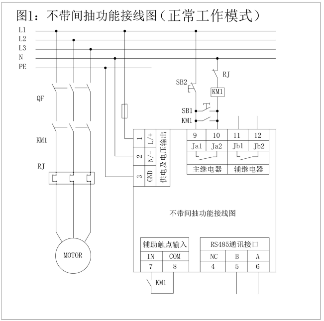 一路數(shù)字量輸入(IN、COM):帶光藕隔離,可接接觸器輔助接點,用于監(jiān)測接觸器狀態(tài),作為電機運行信