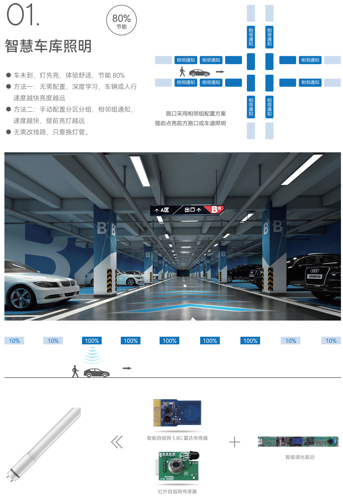 • 動(dòng)態(tài)分區(qū)照明:雷達(dá)檢測(cè)AGV小車(chē)及工人位置,自動(dòng)點(diǎn)亮作業(yè)區(qū),閑置區(qū)降為10%亮度。