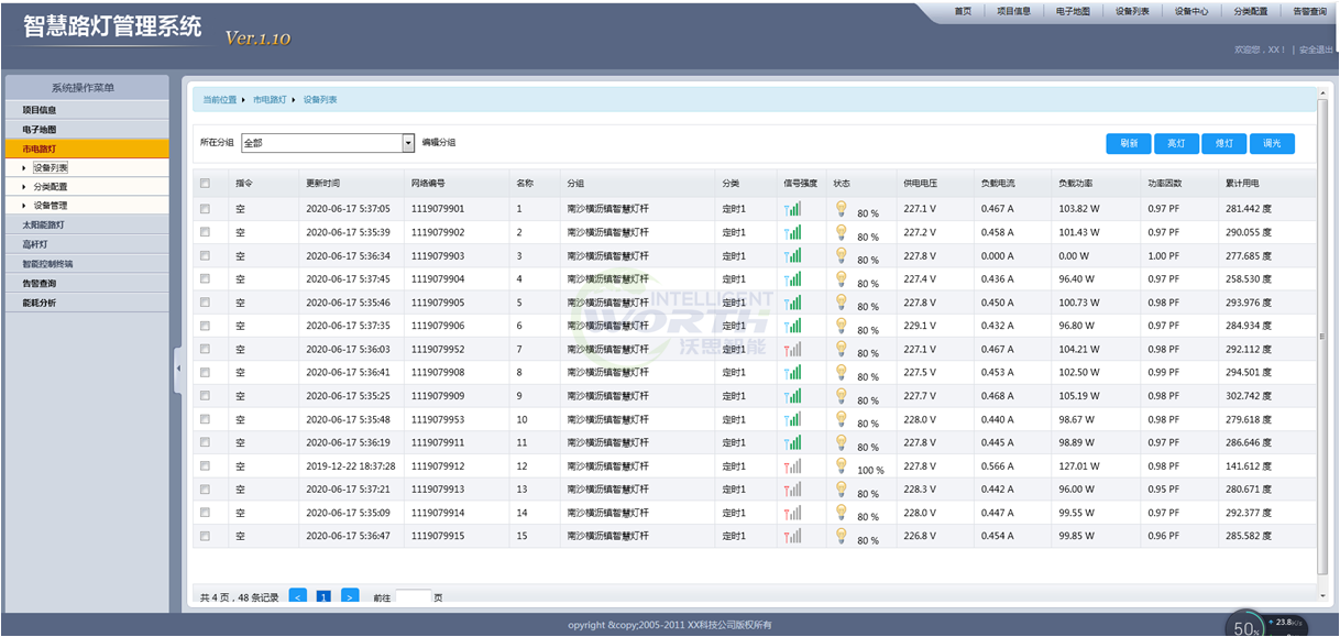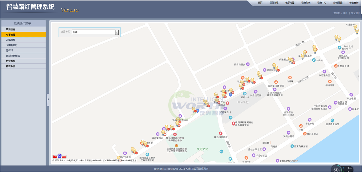 監(jiān)控終端配有RS-485通信接口,可RS-485數(shù)字電能表通訊,實現(xiàn)自動遠程抄表。同時具備CAN-BUS接口、RJ-45網(wǎng)口,方便集成第三方系統(tǒng)。系統(tǒng)支持GIS地理信息功能,可以在地圖上方便地進行監(jiān)控操作,比如單燈開關(guān)燈控制、單燈巡測、查看單燈基礎(chǔ)信息和運行狀態(tài)等。