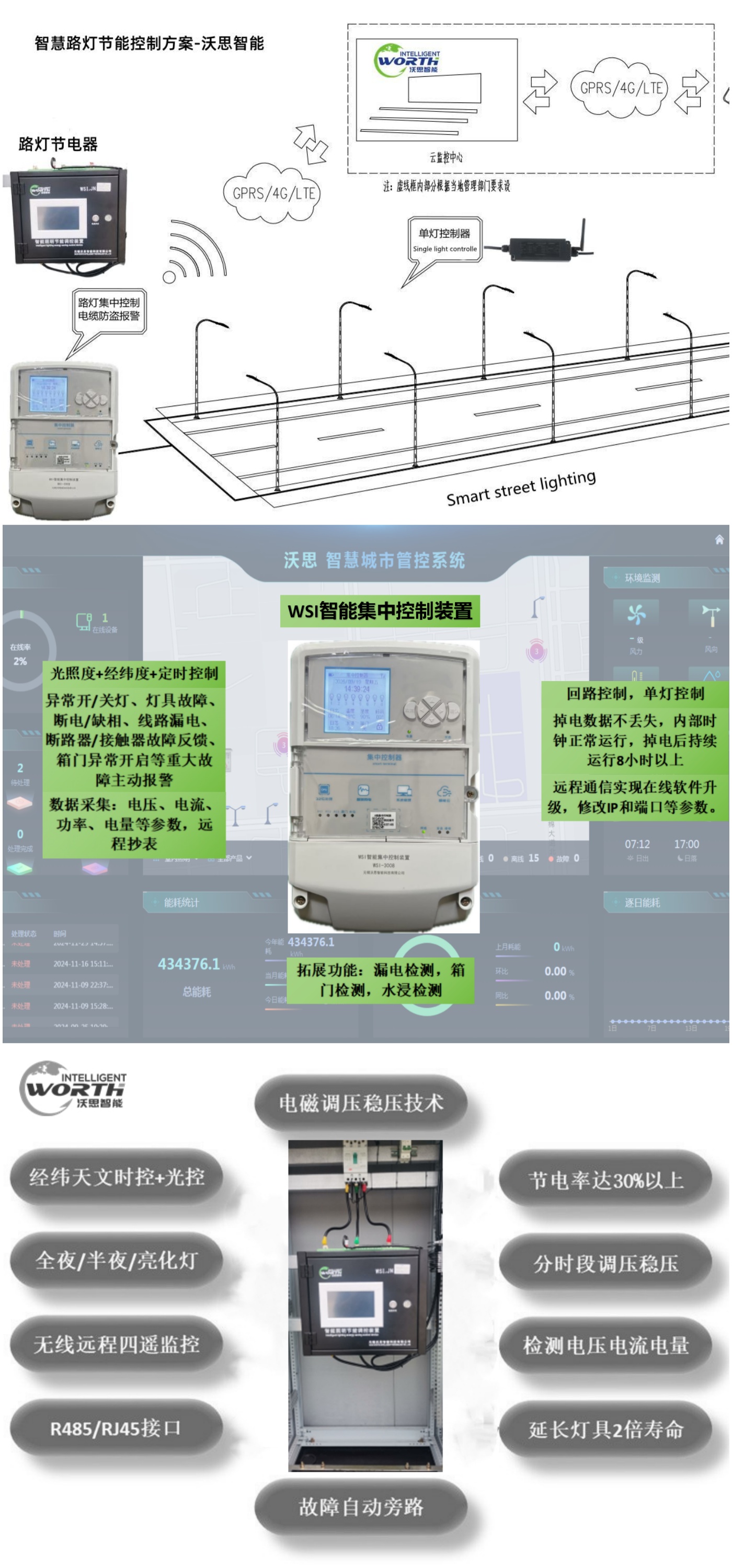 無錫沃思智能科技有限公司智能路燈監(jiān)控終端是一種用于實現(xiàn)路燈智能化管理的設(shè)備,它集成了多種先進技術(shù),能有效提升路燈管理效率、節(jié)能降耗并增強城市安全保障。智能路燈監(jiān)控終端借助物聯(lián)網(wǎng)技術(shù),通過內(nèi)置的傳感器采集路燈的工作狀態(tài)、能耗數(shù)據(jù)等信息,如亮度、電流、電壓等。然后利用 4G/5G、LoRa、NB-IoT 等無線通信技術(shù),將數(shù)據(jù)傳輸至云端服務(wù)器或本地控制中心。服務(wù)器對數(shù)據(jù)進行處理、分析,并根據(jù)預(yù)設(shè)規(guī)則或管理員指令,對路燈進行遠程調(diào)控。