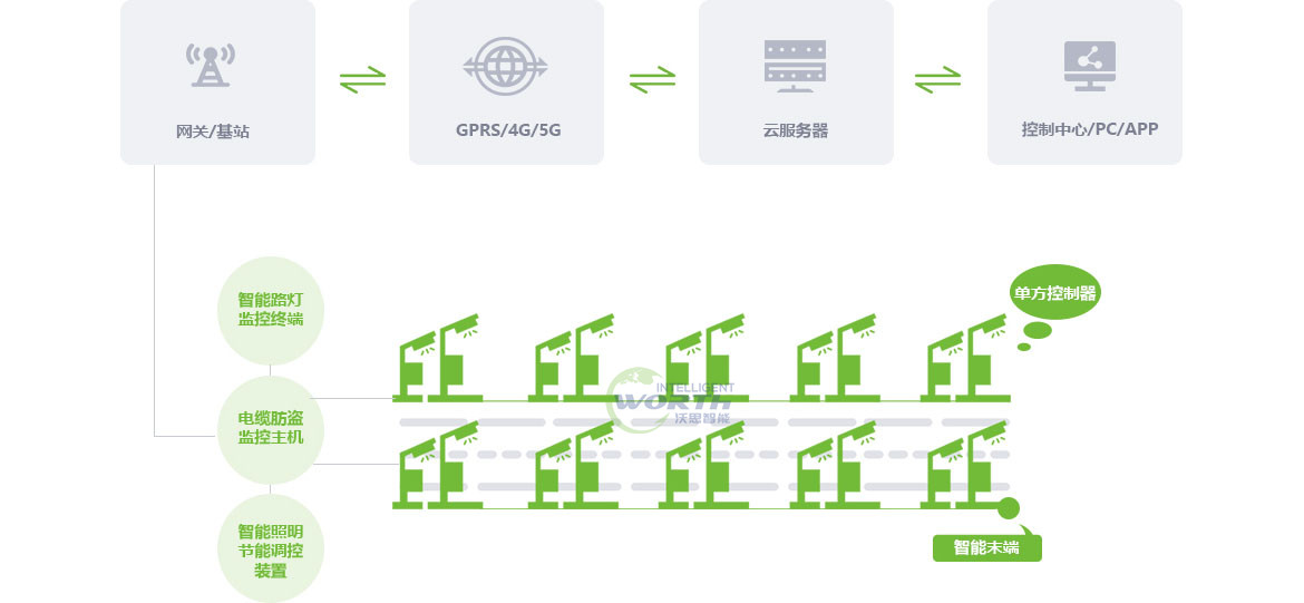 改造方案采用基于物聯(lián)網(wǎng)和 AI 技術(shù)的智能照明控制系統(tǒng),通過安裝智能路燈集中控制器和單燈控制器,實(shí)現(xiàn)了對路燈的遠(yuǎn)程監(jiān)控和管理。系統(tǒng)支持遠(yuǎn)程開關(guān)、亮度調(diào)節(jié)、定時控制、場景控制等功能,同時具備故障報警、能耗分析、預(yù)測性維護(hù)等高級功能。